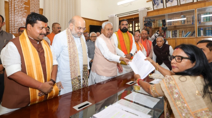 पटना (ए)। बिहार विधानसभा में राष्ट्रीय जनतांत्रिक गठबंधन के उम्मीदवार अपना नामांकन पर्चा दाखिल कर दिया है। सीएम नीतीश कुमार, नितिन नवीन, रामनाथ ठाकुर, उपेंद्र कुशवाहा और शिवेश कुमार ने अपना नामांकन पर्चा दाखिल कर दिया। गृह मंत्री अमित शाह, डिप्टी सीएम सम्राट चौधरी, विजय सिन्हा, मंत्री विजेंद्र यादव, विजय चौधरी समेत भाजपा-जदयू के कई वरिष्ठ नेता नामांकन कार्यक्रम में शमिल हुए।