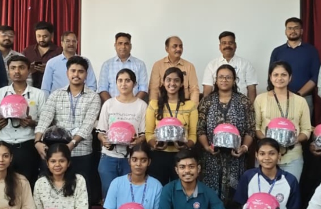 दुर्ग। परिवहन आयुक्त, कार्यालय नवा रायपुर एवं सड़क परिवहन और राजमार्ग मंत्रालय द्वारा जारी दिशा-निर्देश के अनुसार राष्ट्रीय सड़क सुरक्षा माह के दौरान 20 फरवरी 2026 को क्षेत्रीय परिवहन कार्यालय दुर्ग के अधिकारी / कर्मचारियों द्वारा साईंस कॉलेज दुर्ग के छात्र-छात्राओं को सड़क सुरक्षा प्रति जागरूक करते हुए लगभग 30 छात्र-छात्राओं को निः शुल्क हेलमेट वितरण किया गया साथ ही छात्र-छात्राओं को सड़क सुरक्षा के प्रति जागरूक करते हुए शपथ दिलायी गई।