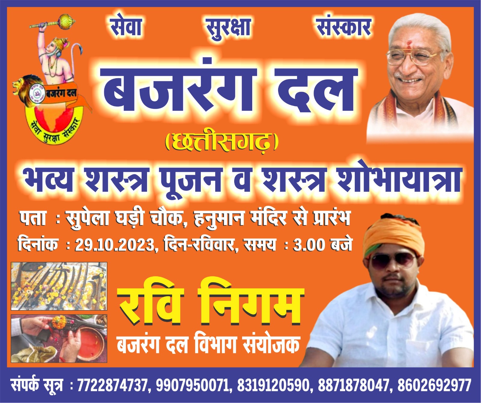 भिलाई। दिनांक 15.10.2023 से प्रारंभ नवरात्रि एवं विधानसभा निर्वाचन 2023 के लिये लागू आदर्श आचार संहिता को दृष्टिगत रखते हुये रामगोपाल गर्ग, भापुसे,